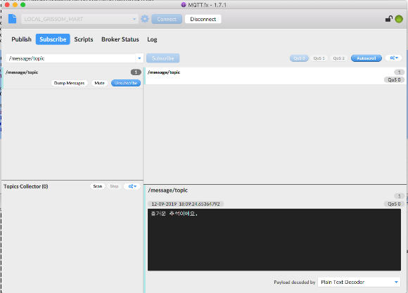 Apply를 하고나면 구독정보를 지정할 수 있다. Connect후, Topic에 대한 path를 지정.. 이제 구독후 대기..