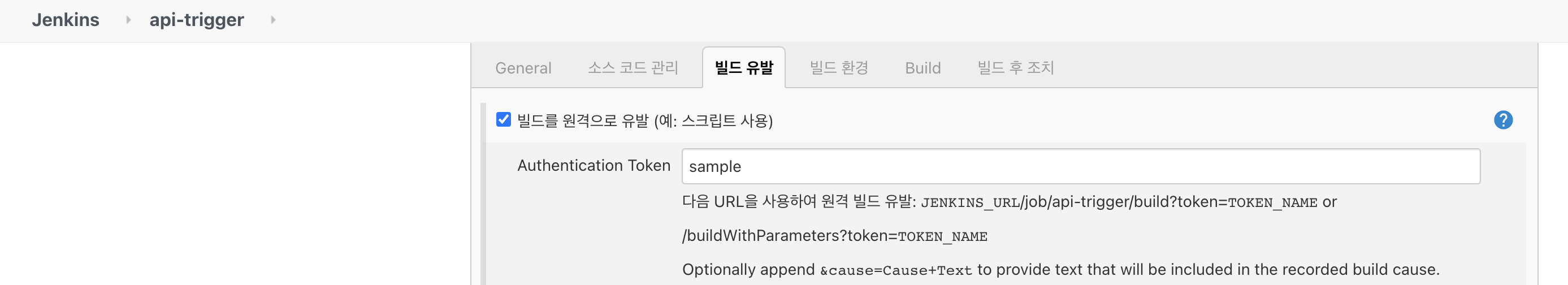 - 빌드를 원격으로 유발 - 체크