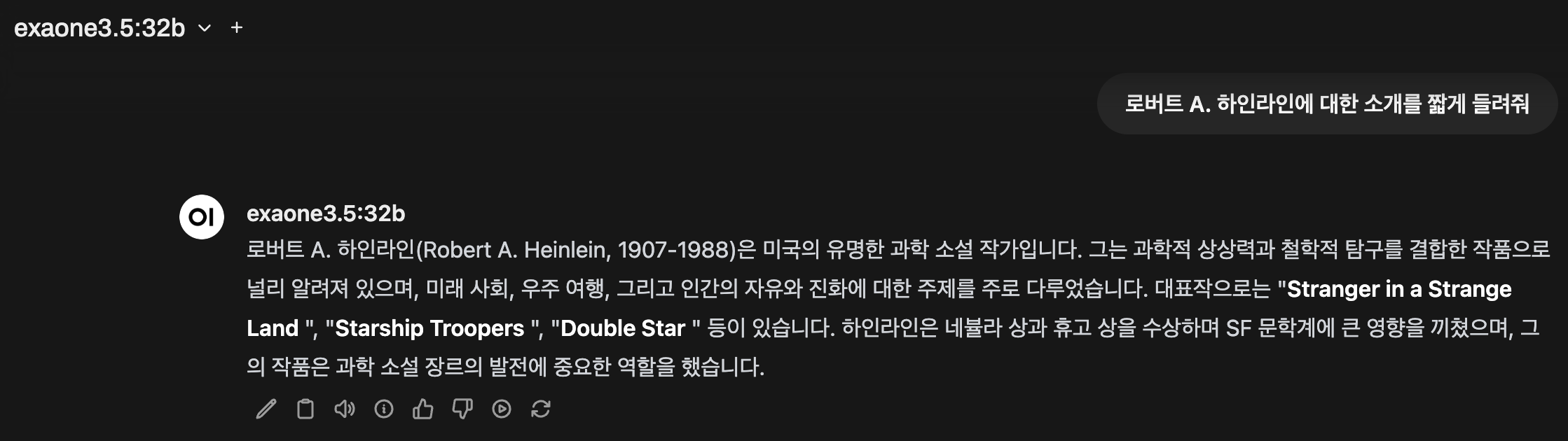 늘 그렇듯 첫 질문은 내가 좋아하는 작가에 대해 짧은 답변을 요구해보았다. 딥시크(deepseek) 32b는 거짓말 좀 많이~~~ 보태서 라면 끓여서 먹을 정도로 늦더랬다.ㅎㅎ